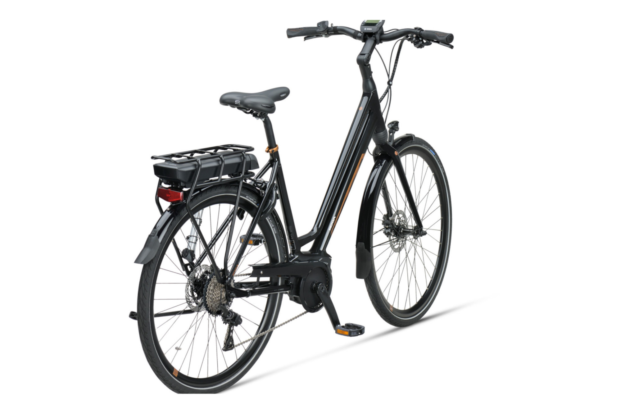 Cette année il est spécialement bien réussi. Un moteur Bosch Performance, puissant mais très silencieux, il va plaire. Avec le mode de l'intégration des batteries, on aurait tendance à penser que ce genre de vélo n'a plus sa place mais il est tellement léger en plus de sa batterie sur le porte bagage que sa conduite est une des plus légère du marché. On peut tenir le guidon avec deux doigts. C'est aussi un des seuls vélos électrique à position sportive qui a un cadre ouvert !